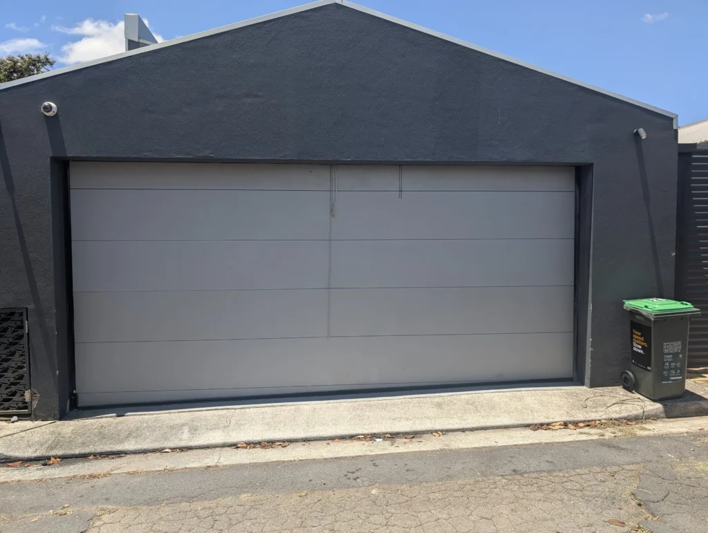 basalt madison smooth sectional door With Taper Leave a Comment / Sectional Doors / By AussieGarageDoors Gliderol Basalt Color Madison Design Smooth Finish With 110mm Right Hand Taper Merlin Ms105 Motor.