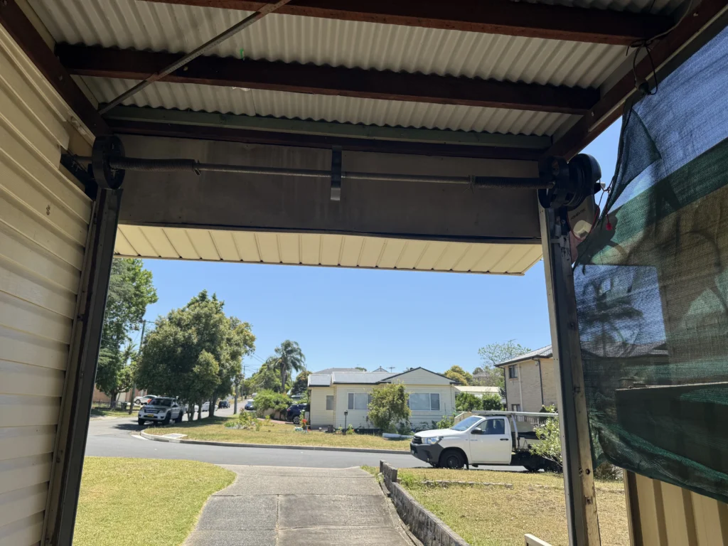 Classic Cream Roller door with upgraded tracks Leave a Comment / Roller Doors / By AussieGarageDoors Gliderol Garage Classic Cream Roller Door AA Upgrade Tracks Merlin Mr555 Weatherproof Motor and Motor Cover