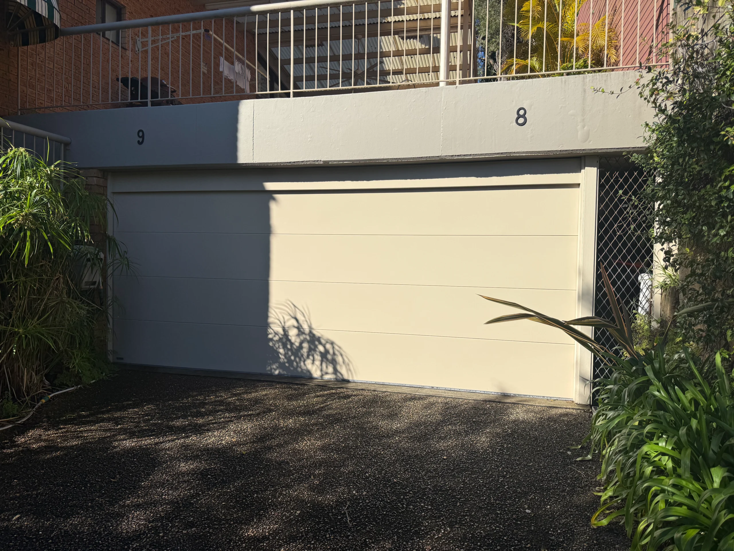 Paperbark Madison smooth sectional doors Leave a Comment / Sectional Doors / By AussieGarageDoors Gliderol Panel Lift Garage Door. Paperbark Color Madison Design smooth Finish. supercloser