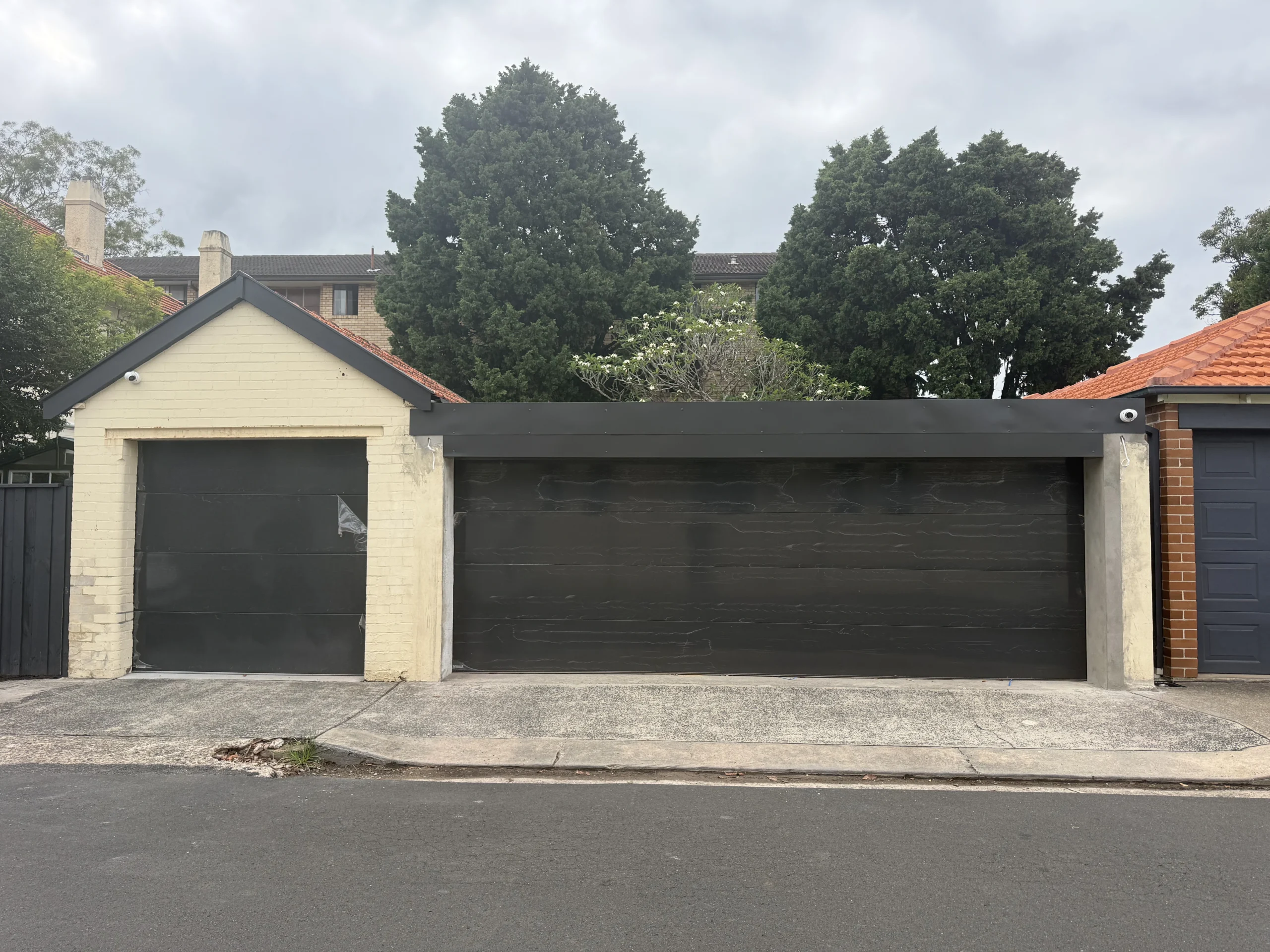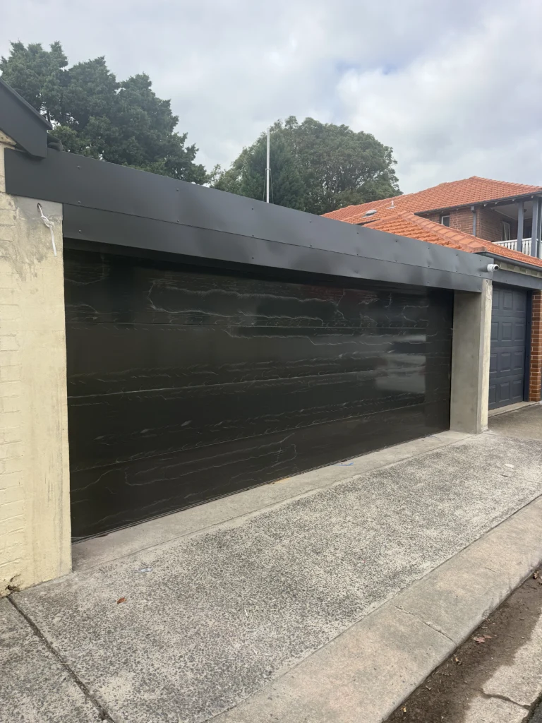 Two Monument Madison smooth sectional doors 1 Comment / Sectional Doors / By AussieGarageDoors Gliderol Panel Lift Garage Door. Monument Color Madison Design smooth Finish. Merlin Ms105 Motor Opener